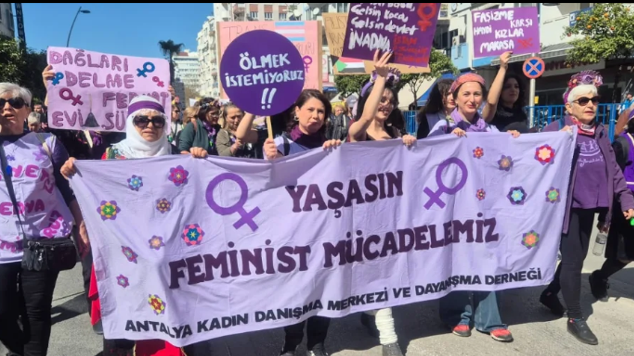 Eylemde Halkevleri'nden Kadriye Tuğcu ve Antalya Emek ve Demokrasi Platformu'ndan Devrim Mol tarafından yapılan açıklamada, kadınların hem çalışma hayatında hem de gündelik yaşamda eşitsizlik, yoksulluk ve şiddetle karşı karşıya kaldığı ifade edildi. Açıklamada, “Bu düzen bizim emeğimizle ayakta duruyor ama bize yoksulluk reva görülüyor. Bu düzen bizim sırtımızdan yükseliyor ama bize şiddet, güvencesizlik ve korku dayatılıyor” denildi.