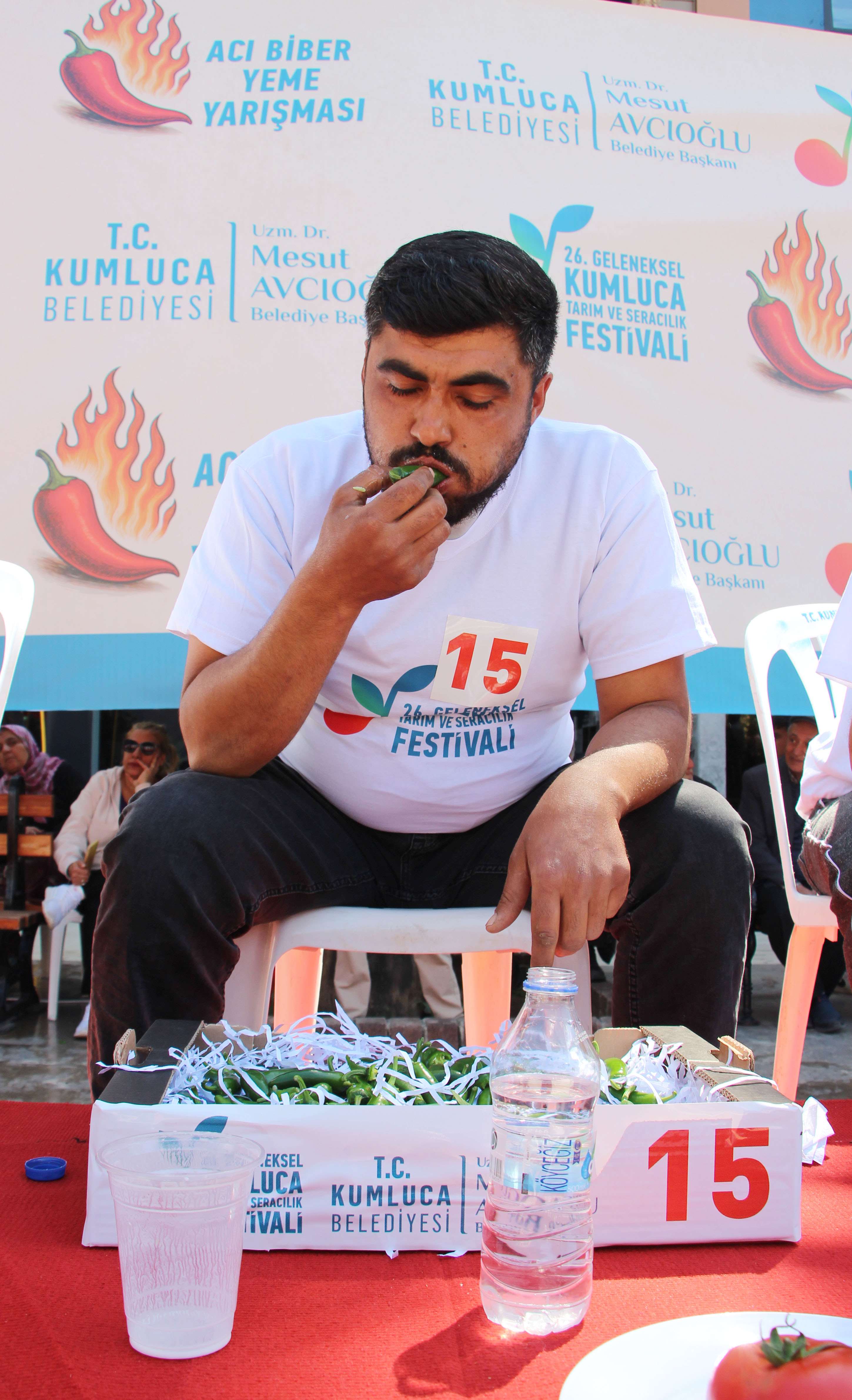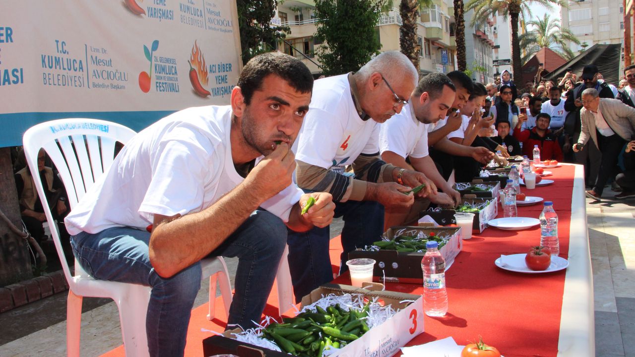 .Cumhuriyet Meydanı'nda düzenlenen yarışmaya 30 kişi katıldı. Kaymakam Bahadır Güneş ve Belediye Başkanı Mesut Avcıoğlu ile siyasi parti temsilcileri, daire amirleri, STK temsilcileri, mahalle muhtarları ve çok sayıda kişi yarışmayı izledi. Jüri üyeliğini Tarım ve Orman İlçe Müdürü İsa Akşit, Kumluca Belediye Başkan Yardımcısı Erhan Kökcü ve Kumluca Ziraat Odası Başkanı Hidayet Kökce'nin yaptığı yarışmada katılımcılar karton ambalajın içinde aldıkları biberleri önce jüri üyelerinin nezaretinde tarttı ve yarışma standına geçti. Başlama düdüğüyle birlikte yarışmacılar birinci olmak için ter döktü. Acı biberleri yemekte zorlanan bazı yarışmacılar acıyı hafifletmek için domates yiyip, ayran ve su içti.