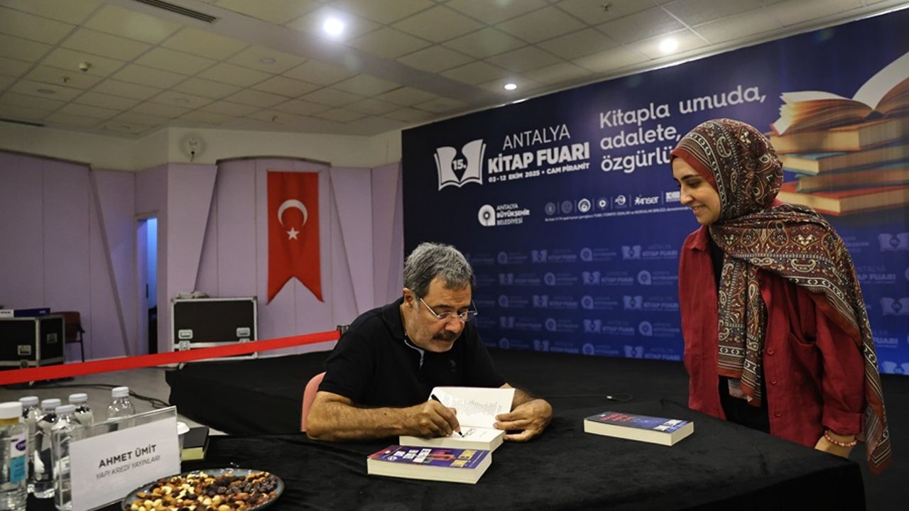 Antalya Büyükşehir Belediyesi’nin bu yıl 15’incisini düzenlediği Antalya Kitap Fuarı, “Kitapla umuda, adalete, özgürlüğe…” temasıyla Cam Piramit’te devam ediyor. Türkiye’nin dört bir yanından 260 yazar ve 220 yayınevinin katıldığı fuarın altıncı gününde ünlü şair ve yazar Ahmet Ümit, okurlarıyla buluşarak kitaplarını imzaladı.