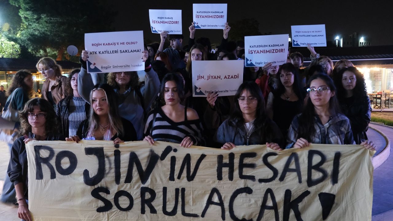 Basın açıklamasında öğrenciler, Rojin Kabaiş’in ölümünün aydınlatılmasını ve Adli Tıp Kurumu’nun bulguları kamuoyuna açıklamasını talep etti.Kabaiş’in 27 Eylül 2024’te kaldığı KYK yurdundan ayrıldığı, 18 gün sonra Van Gölü kıyısında cansız bedenine ulaşıldığı hatırlatıldı. Ailesine geç haber verildiğini ve otopsi raporu çıkmadan “intihar” iddiaları ortaya atıldığını söyleyen öğrenciler, “ATK bir yıl sonra Rojin’in göğsünde ve cinsel bölgesinde iki erkeğe ait DNA bulunduğunu açıkladı ancak bu bulgular dosyaya eklenmedi, kimlikleri açıklanmadı” dedi.