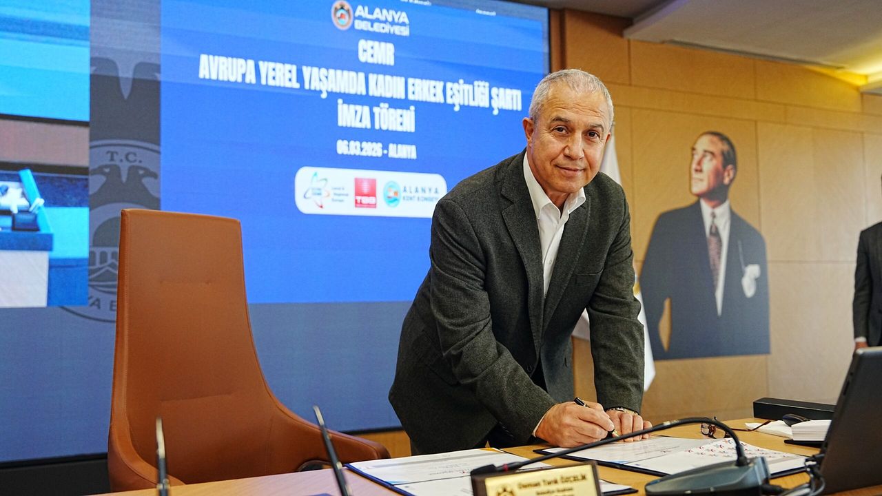 Alanya Belediye Başkanı Osman Tarık Özçelik ise imza töreninde yaptığı konuşmada, kadın-erkek eşitliğinin yerel yönetim anlayışlarının temel ilkelerinden biri olduğunu vurguladı.