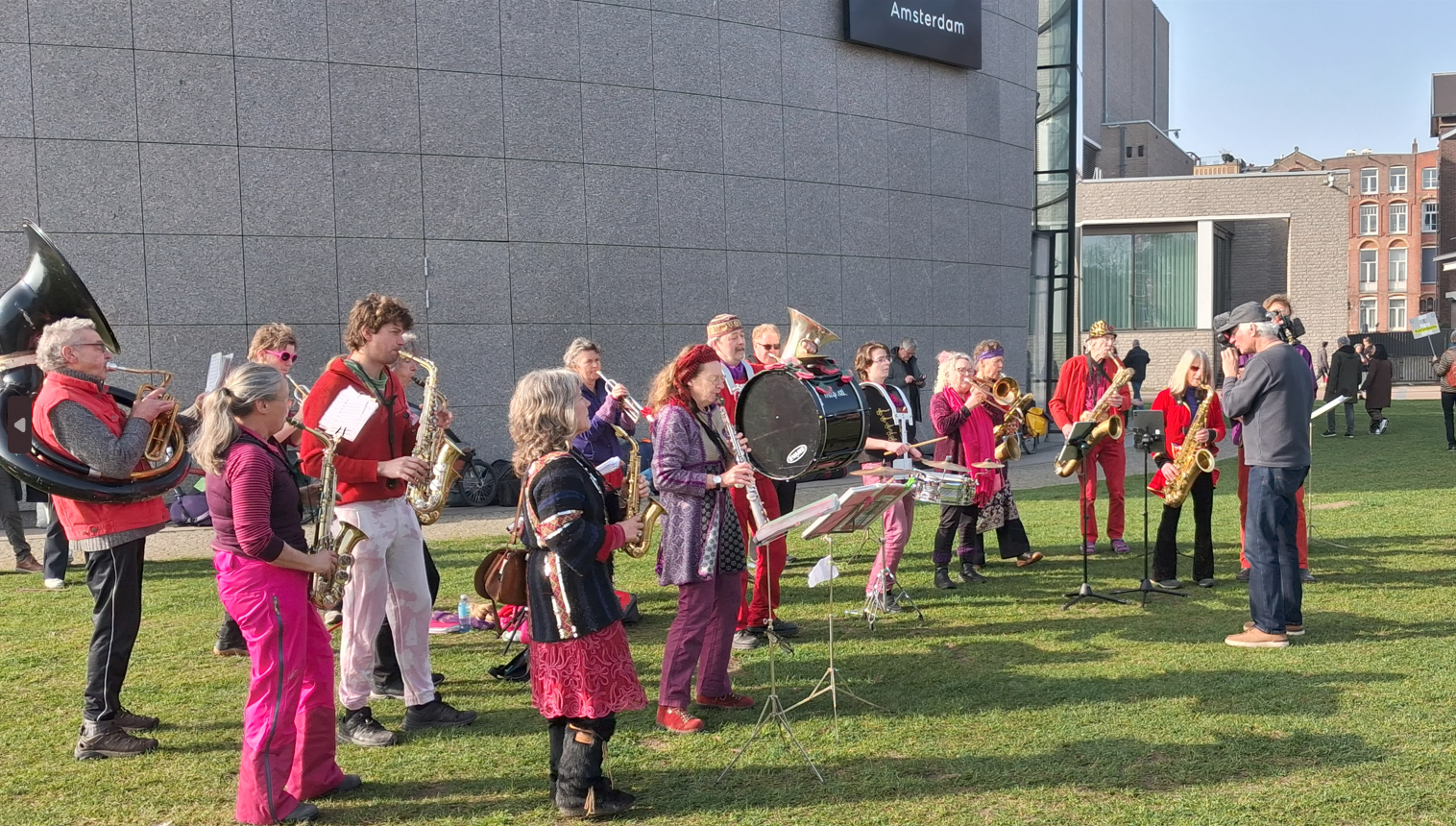 Yürüş boyunca olduğu gibi Museumplein'de de renkli bir ortam vardı. Hemen her grup sloganlar, pankartlar, müzik, dans ve başkaca eylemler ortaya koyarak dert edindiği sorunları dile getirdi.