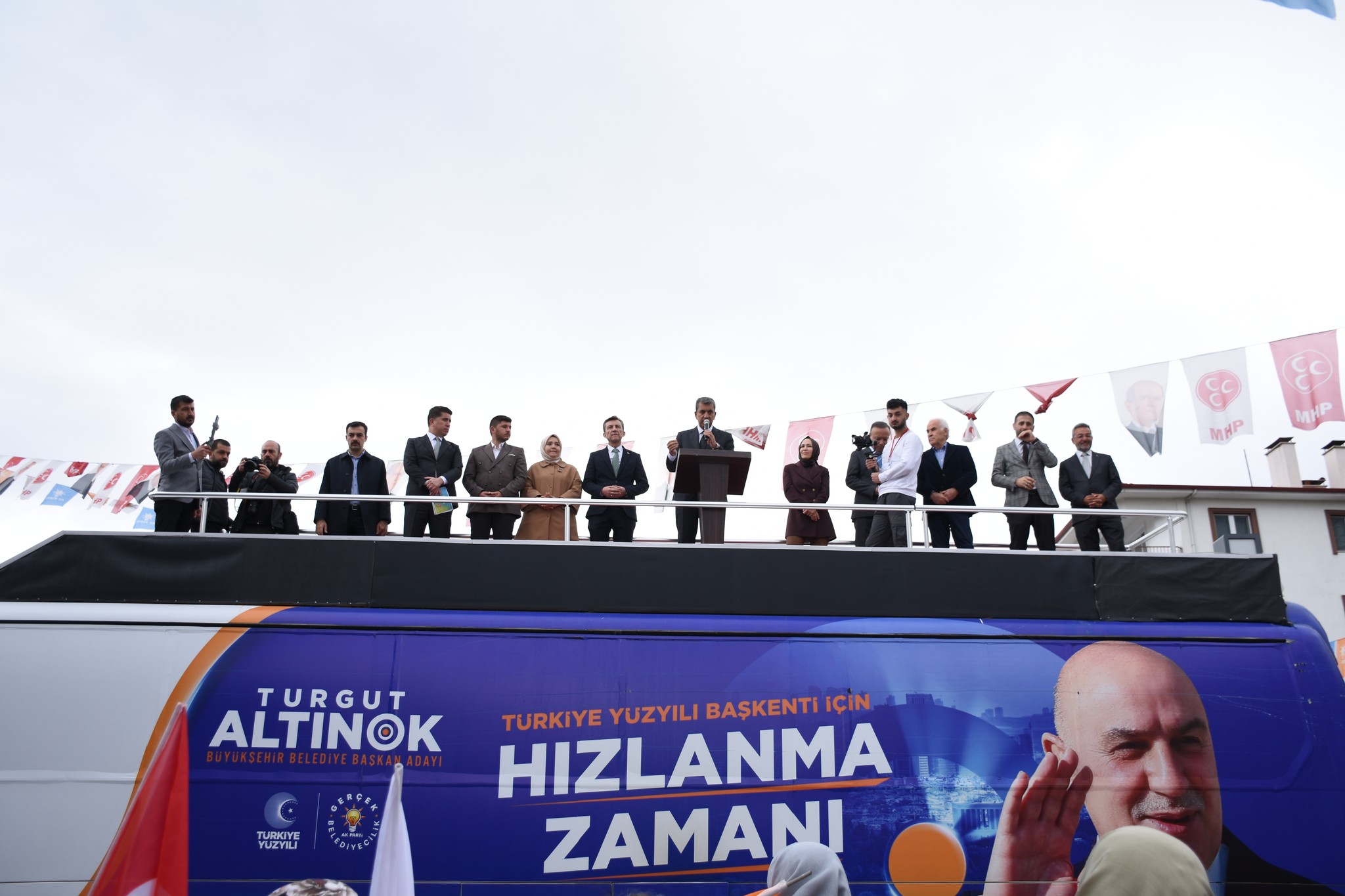 Turgut Altınok'un seçim otobüsü üzerinde bozkurt işareti