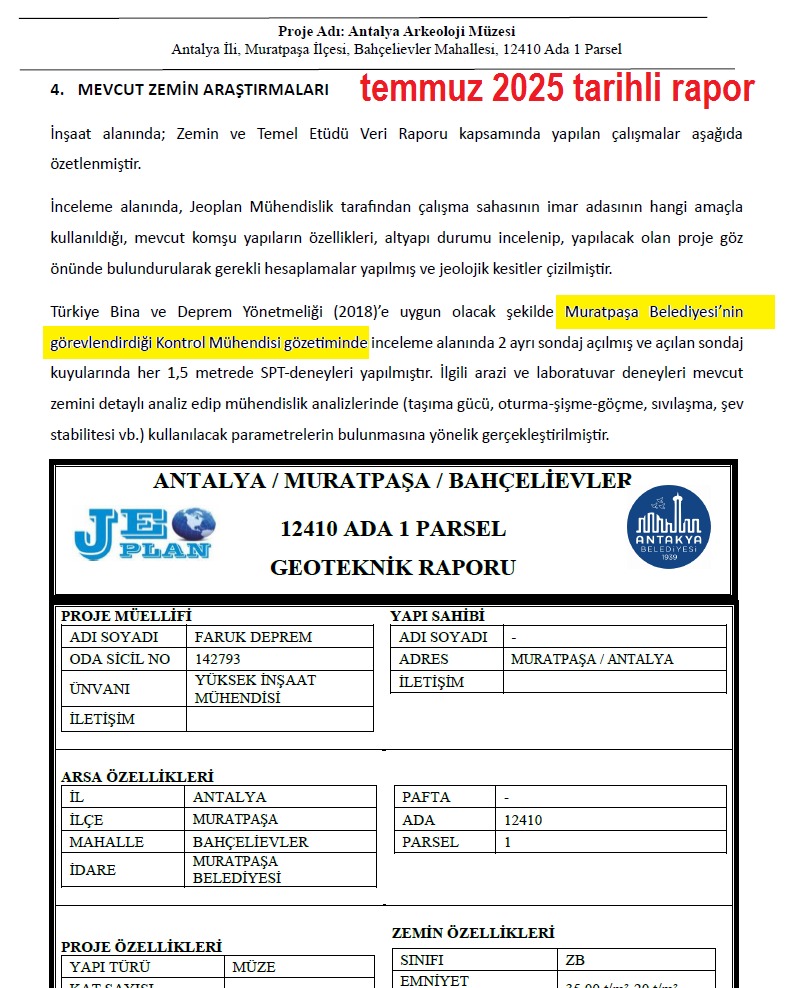 Uzmanlar, raporda işverenin “Antakya Belediyesi” olarak geçtiğine dikkat çekerek, müteahhit firmanın daha önce Antakya Müzesi’nde çalıştığını, logoyu değiştirmeyi unuttuğunun anlaşıldığını ifade etti. Çalışma grubunun raporunda ayrıca, bir sayfada “33 sondaj yapıldığı” yazarken, başka bir sayfada “2 zemin sondajı” ifadesinin yer aldığına işaret edilerek çelişkiler sıralandı.