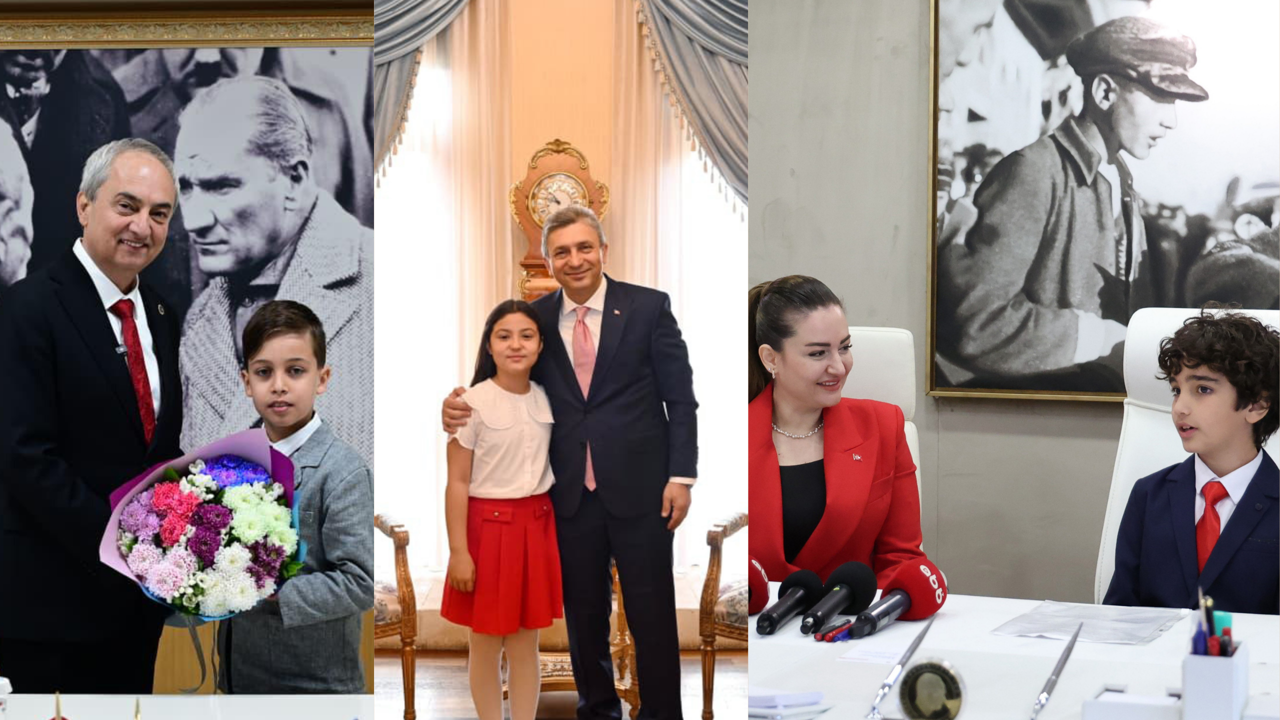 Antalya’da 23 Nisan Ulusal Egemenlik ve Çocuk Bayramı kapsamında düzenlenen törenlerde, kamu yöneticileri koltuklarını çocuklara bıraktı. Antalya Büyükşehir Belediyesi, Kepez Belediyesi ve Antalya Valiliği’nde gerçekleşen temsili devir teslim törenlerinde çocuklar, geleceğe dair mesajlarıyla dikkat çekti.