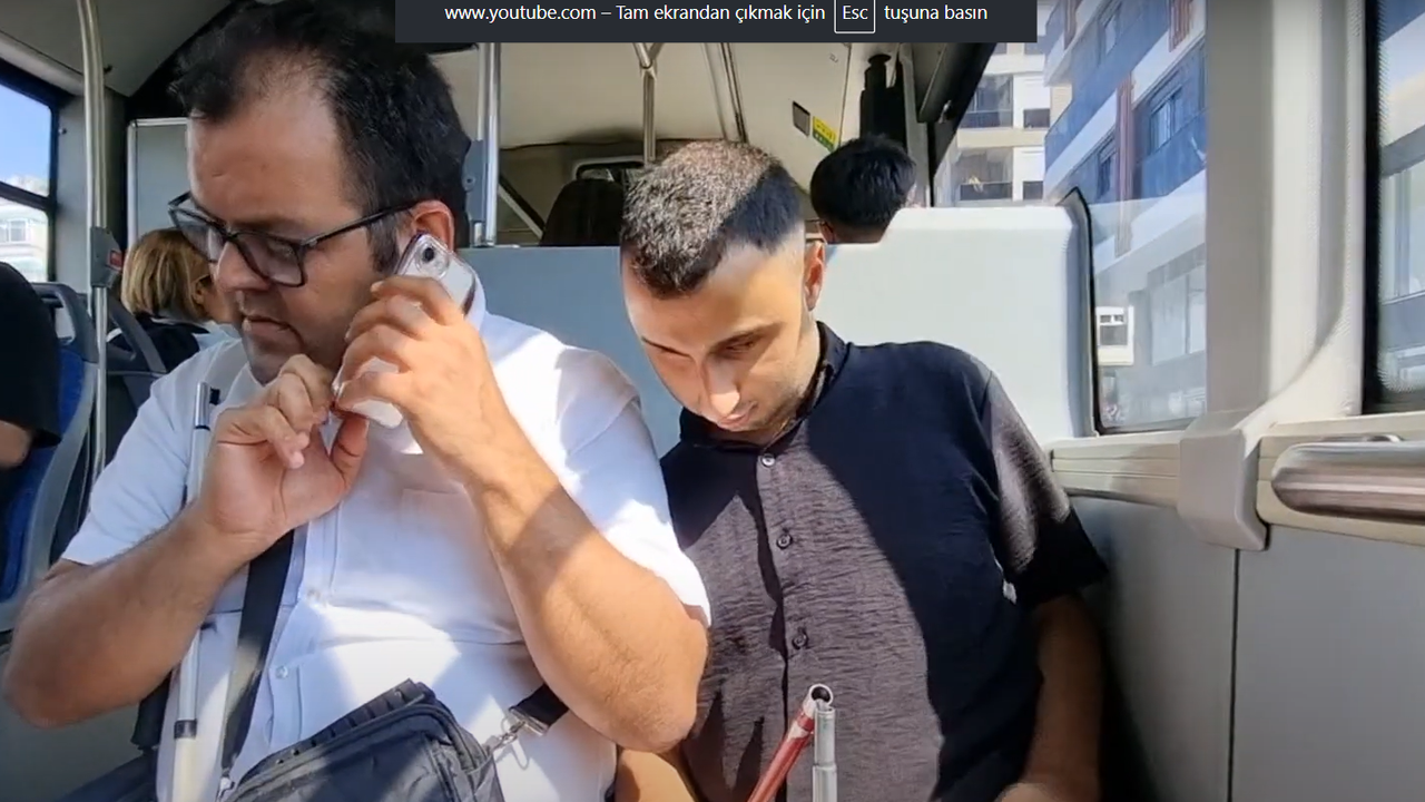 Otobüse bindik, Termessos Bulvarı'ndan Yener Ulusoy Bulvarı'na gideceğiz. Otobüse bindiğimizde şanslıyız çünkü engelliler için ayrılan koltuklar boş. Özdemir ve Yakıştır böylece rahat yolculuk yapabiliyorlar. Ancak şimdi başka bir problem var. Hangi durakta ineceklerini bilemiyorlar. Çünkü otobüste sesli durak bildirim sistemi yok. Çevrelerine soruyorlar, neredeyiz, kaç durak kaldı? diye sormak zorundalar.