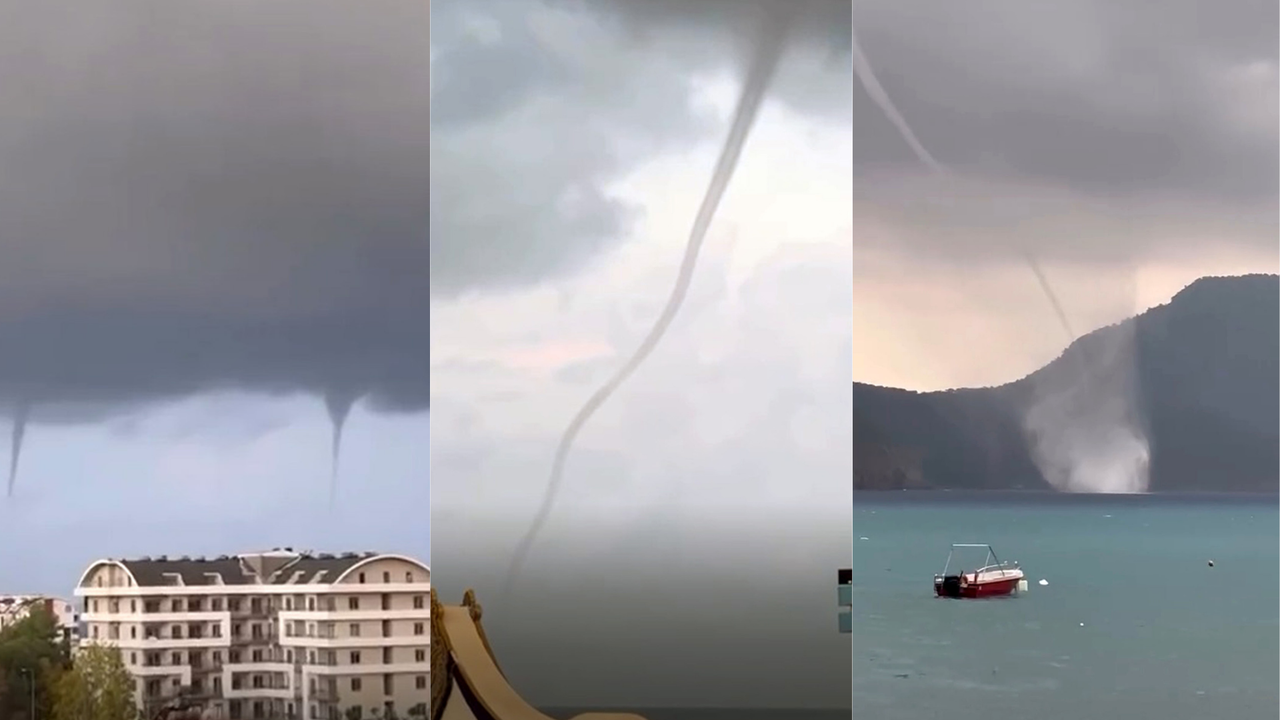 Alanya'da saat 08.30 sıralarında Avsallar Mahallesi'nde denizde 2 hortum çıktı. Bazı vatandaşların cep telefonu kamerasıyla kaydettiği hortumlar karaya ulaşmadan etkisini yitirdi.