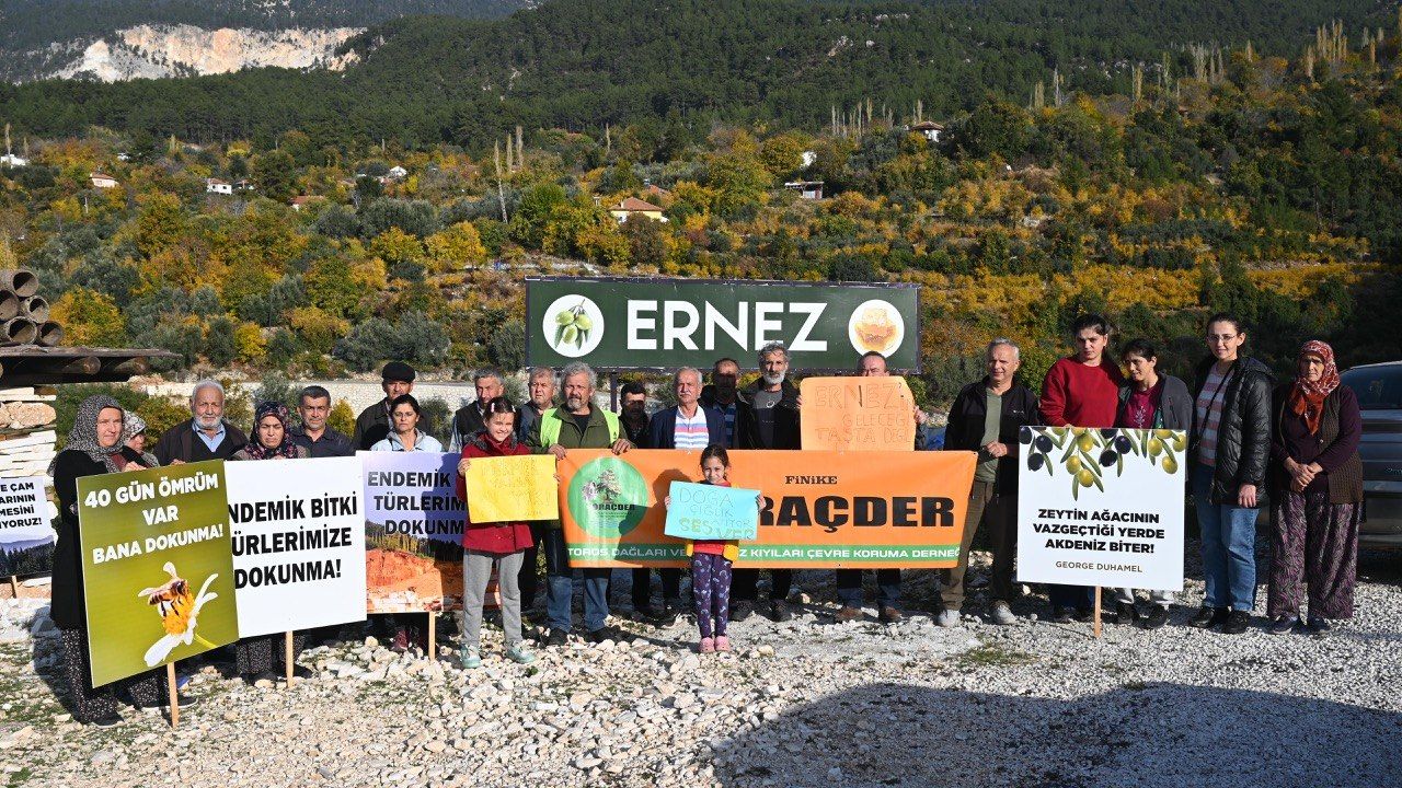 Ernez köyü girişinde toplanan Finike TORAÇDER üyeleri ve köylüler, taşıdıkları döviz ve pankartlarla açılmak istenen mermer ocağına karşı tepkilerini yansıttı. Finike TORAÇDER’in yaptığı açıklamada, Ernez köyünün doğal ve kültürel bütünlüğünün mermer ocaklarının tehdidi altında olduğu vurgulanarak şöyle denildi: “Ernez; dünyada nadir görülen sedir ormanları, coğrafi işaret süreci tamamlanmış patentli balı, ve bal festivali ile, hemen yanı başındaki Arneai Antik Kenti ile ekolojik turizm köyü olmaya aday, benzersiz bir yaşam alanıdır. Ancak son dönemde art arda açılmak istenen mermer ocakları, köyün yaşam alanlarını, su kaynaklarını ve korunması gereken bu eşsiz doğal değerleri ciddi şekilde tehdit etmektedir.