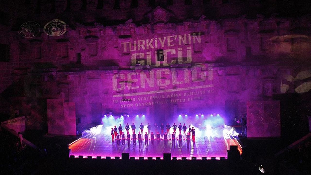 Antalya Valiliği, Gençlik ve Spor İl Müdürlüğü tarafından, 19 Mayıs Atatürk'ü Anma, Gençlik ve Spor Bayramı kutlamaları kapsamında, Aspendos Antik Tiyatrosu'nda, 'Türkiye'nin Gücü Gençliği' mottosuyla Gençlik Haftası ve 19 Mayıs Atatürk'ü Anma, Gençlik ve Spor Bayramı temalı organizasyon düzenlendi. Ulu Önder Mustafa Kemal Atatürk'ün 9 Mart 1930'da Aspendos Antik Tiyatrosu'nu ziyaretinde söylediği "Bu kalede temsiller düzenleyin, konserler verin, güreşler tertip edin" sözüne ithafen gösterinin Aspendos'ta yapıldığı belirtildi.