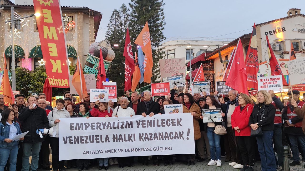 Antalya Emek ve Demokrasi Güçleri Platformu, ABD’nin 2 Ocak’ta Venezuela’ya yönelik gerçekleştirdiği askeri saldırı ve bombalamalara ilişkin basın açıklaması yaptı. Açıklamada, saldırıların uluslararası hukuku, halkların egemenlik hakkını ve kendi kaderini tayin ilkesini açıkça ihlal ettiği vurgulandı.