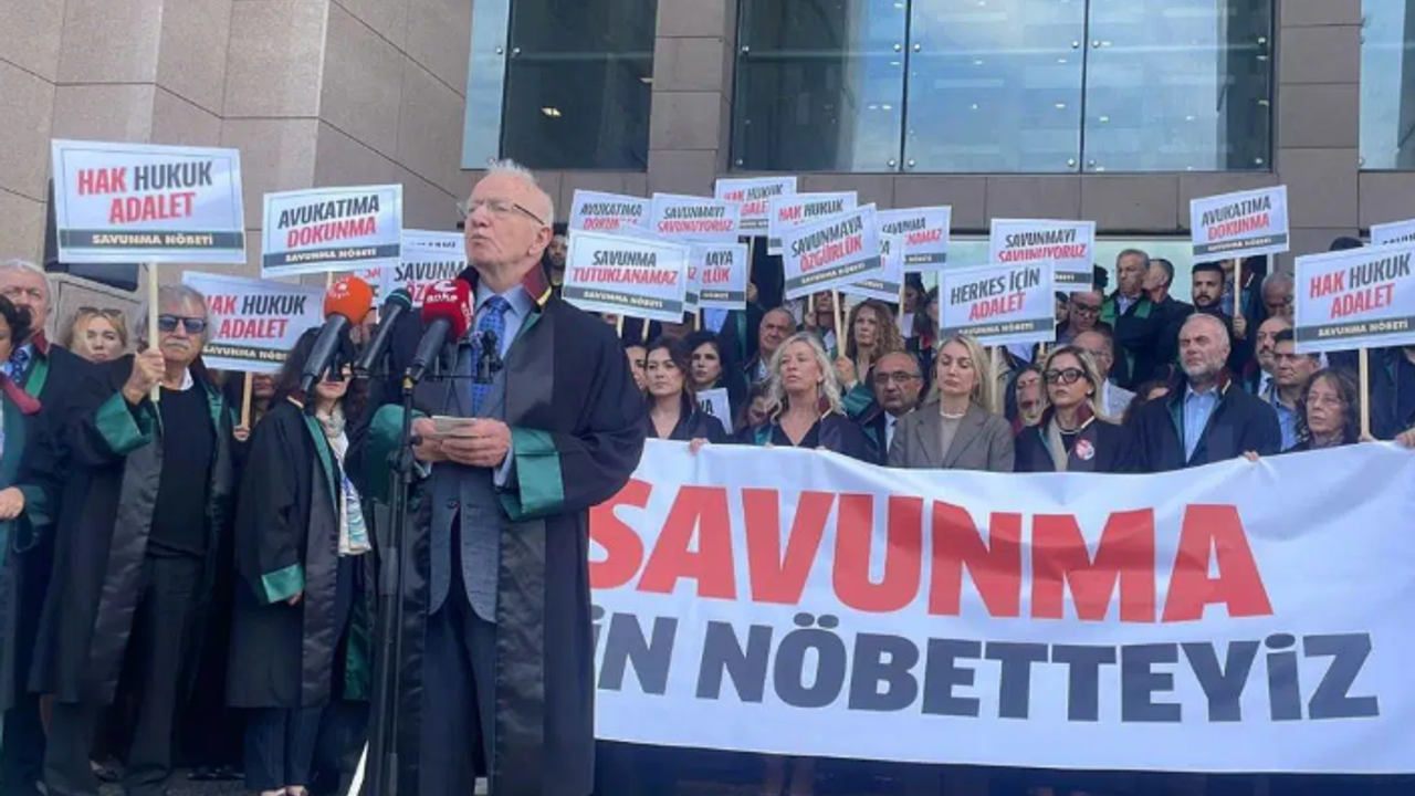 İstanbul'da Çağlayan’daki Adliye Sarayı önünde dün yapılan ilk etkinlik kapsamında avukatlar adliyede bir araya geldi. İstanbul Barosu Başkanı Prof. Dr. İbrahim Kaboğlu’nun ve tutuklu CHP Milletvekili Aykut Erdoğdu’nun eşi avukat Tuba Torun’un konuşma yaptığı nöbette Ekrem İmamoğlu’nun eşi Dilek Kaya İmamoğlu da avukatları yalnız bırakmadı. Kaboğlu, avukatlık mesleğinin bir kamu hizmeti olduğu halde avukatları görevden alıkoymanın başlı başına bir anayasa suçu olduğuna dikkat çekti.