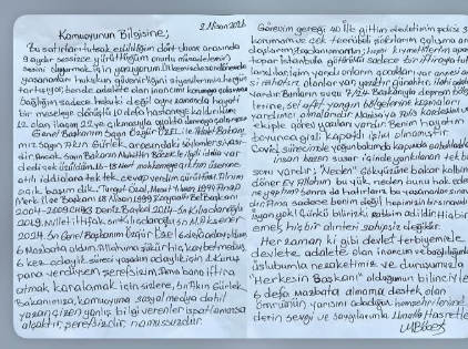 9 aydır tutuklu bulunduğunu ve bu süreçte birçok kez hastaneye kaldırıldığını açıklayan Böcek, yaşananları “ağır bir sınav” olarak nitelendirdi. Tüm gelişmelere rağmen hukuka olan inancını koruduğunu dile getirdi.