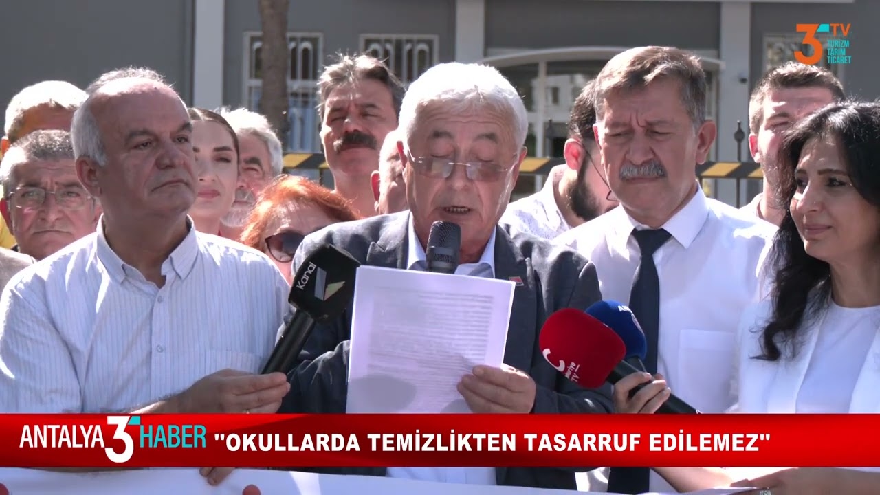 CHP Antalya İl Başkanlığı, Eğitim- Sen Antalya Şubesi, Veli-Der Antalya Şubesi ve pek çok sivil toplum örgütünün katılımıyla eğitim alanındaki sorunlara dikkat çekmek üzere Antalya İl Milli Eğitim Müdürlüğü önünde bir açıklama yaptı. Açıklamayı yapan CHP Antalya İl Başkanı Nail Kamacı, bilimselliğe ve laikliğe aykırı müfredat değişikliğine, artan yoksullukla beraber eğitime erişimde eşitsizliğin derinleştiğinin altını çizerek, öğrencilere bir öğün ücretsiz yemek dağıtılması gerektiğine işaret etti. Kamacı, okullarda başta temizlik personeli olmak üzere, güvenlik ve yardımcı personel eksikliğine dikkat çekerek, öğrencilerin temiz bir okulda eğitim görmesinden esirgenerek kamu tasarrufu yapılamayacağını belirtti.