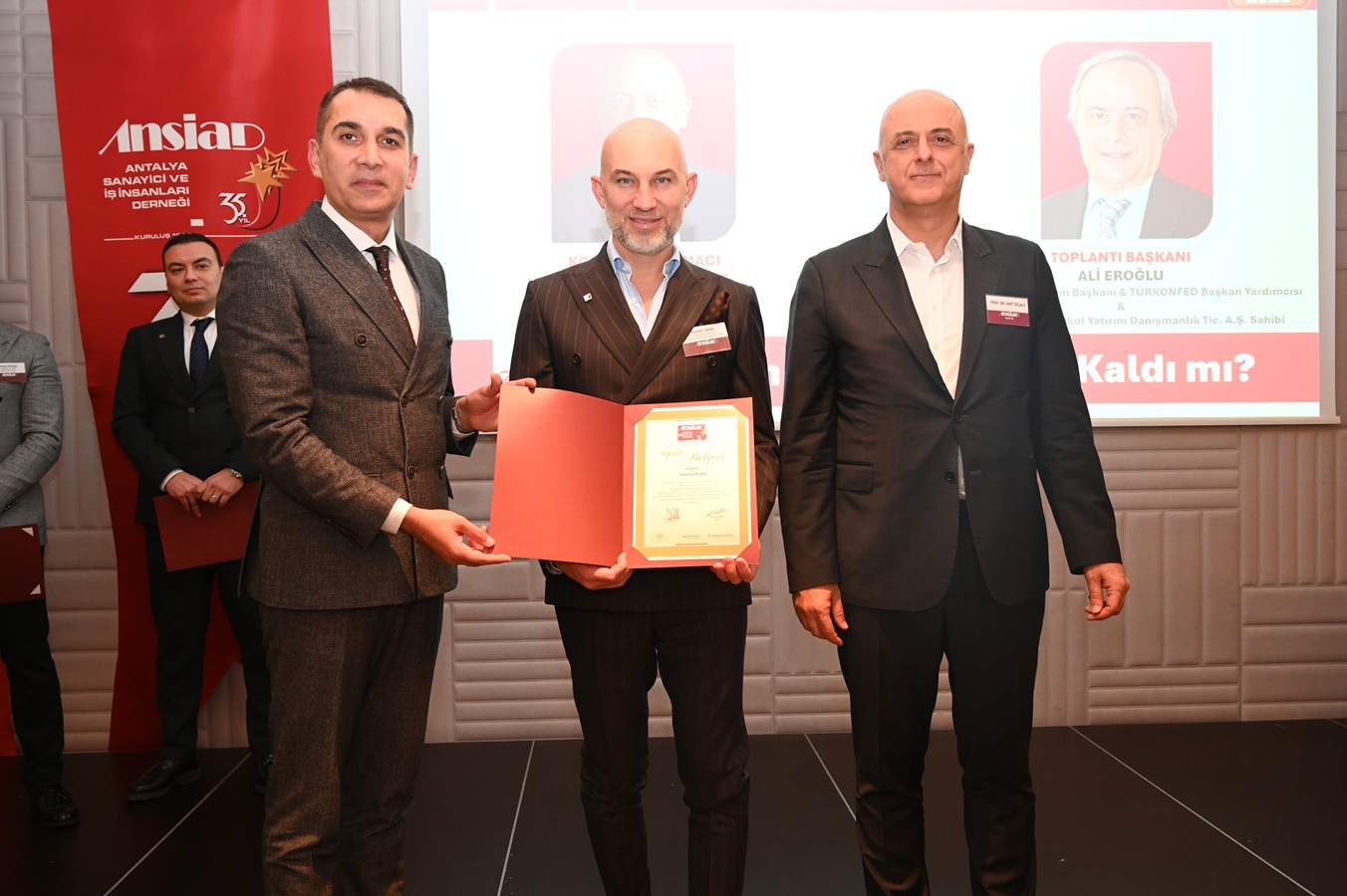 Toplantıda, ANSİAD ailesine katılan yeni üyeler de tanıtıldı. Yapıtalya İnşaat Sanayi ve Ticaret Ltd. Şti. sahibi Tunahan Karay, Özgüntur Özel Eğitim, İnşaat, Taah. Turizm ve Ticaret A.Ş. sahibi Hakan Erdoğan ve 7 Mehmet Restaurant Turizm Petrol Gıda İnşaat Tar. Hayv. San. ve Tic. Ltd. Şti. sahibi Mehmet Akdağ üyelik rozetlerini Ekonomist & ANSİAD Fahri Üyesi Prof. Dr. Ümit Özlale ve ANSİAD Başkanı Ercan Özbek’ten aldı.