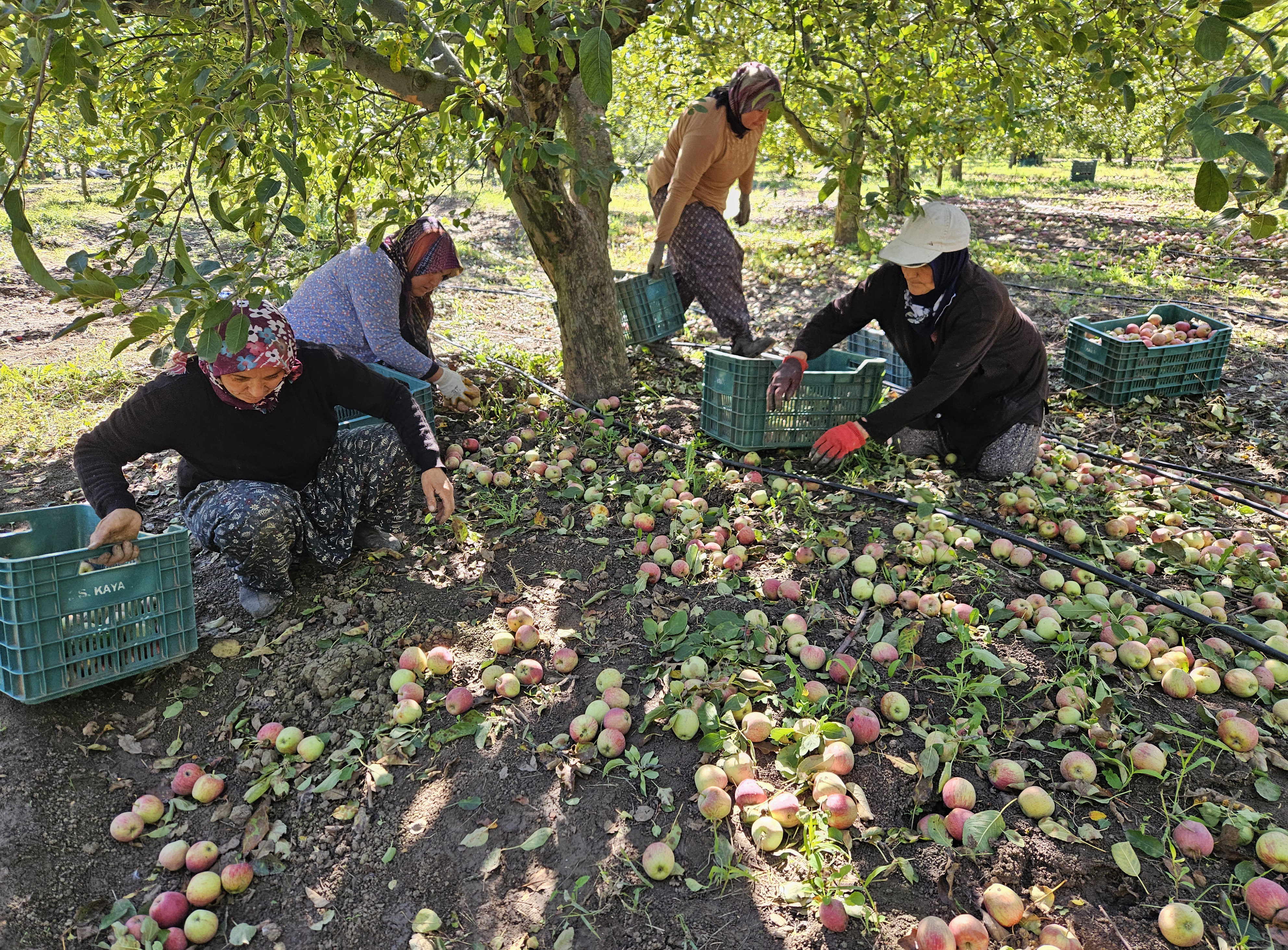 Hasat döneminde kadınlar, meyve suyu için kullanılacak elmaları traktörlerle köy meydanlarına taşıyor. Burada binlerce tonluk “dökük elma” yığınları oluşuyor. Kamyonlarla Isparta ve çevre illerdeki fabrikalara sevk ediliyor.
