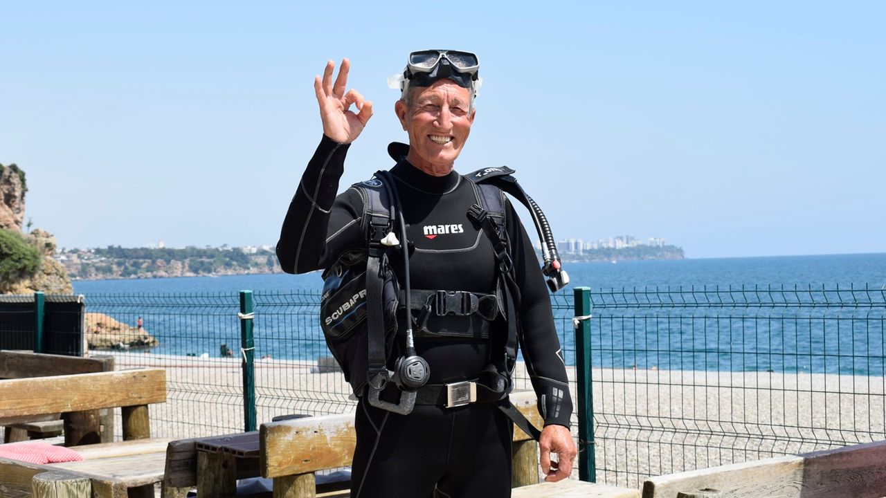 Uzun yıllar turizm sektöründe çalışan Mehmet Ali Altay, 1999 yılında emekli oldu. Emekliliğinden önce arkadaşlarının teşviğiyle dalış kursuna katıldığını anlatan Altay, “8-10 arkadaşımla kurslara yazıldık. Başarıyla tamamladık, belgelerimizi aldık. O gün bugündür suyun altındayım" diye konuştu. 2002 ile 2015 yılları arasında açık denizde balık çiftliğinde çalıştığını anlatan Altay, “Açık denizde 5-6 ay boyunca günde 70-80 ton yemle balıkların bakımını yapıyorduk. Hasat zamanı geldiğinde balıkları sıcak banyoya alırdık" ifadelerini kullandı. Açık denizde orkinos çiftliklerine giderken köpek balığıyla karşılaştıklarını belirten Altay, “Çiftliğe girmiş bir köpek balığı ile mücadele etmek zorunda kaldık. Hatta ayağımı da ısırmıştı. Bu tür tehlikeleri çok yaşadık ama suya olan sevgim hep ağır bastı" dedi.