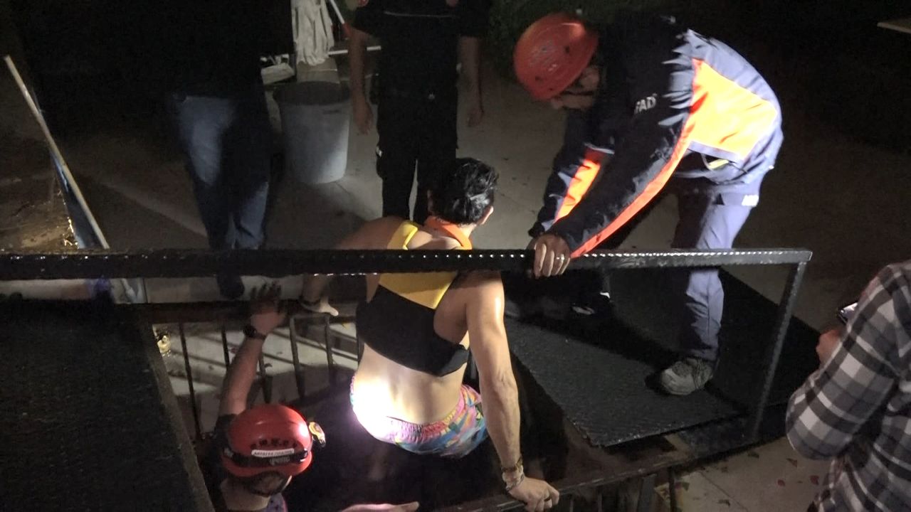 Ekipler, denizden ulaşamayınca Atatürk Parkı’ndaki restoranın altından mağaraya inen gizli tüneli buldu. 30 metrelik halat sistemiyle adeta aksiyon filmi çekilirken, önce erkek kurtarıldı. Ardından üşüyen genç kadına dalgıç kıyafeti giydirildi.