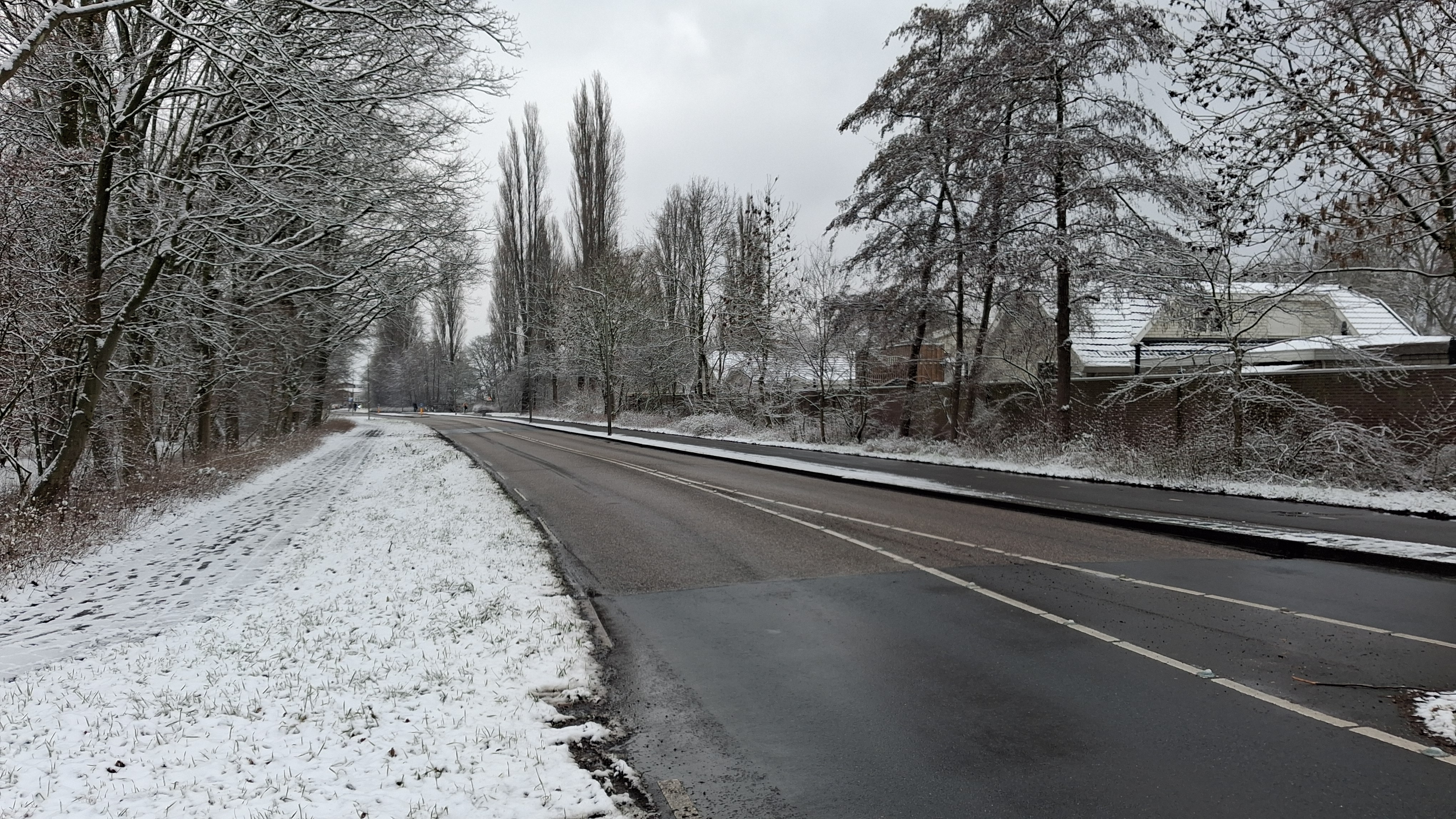 Girdim ormana. Ormandaki ana bisiklet yollarının dışında kalan her yer bembeyaz. Hava da dehşetli ayaz; o saatlerde 4-5 derece falan olmalı. Çünkü bazı kanalların derin olmayan kesimleri buz tutmuş.