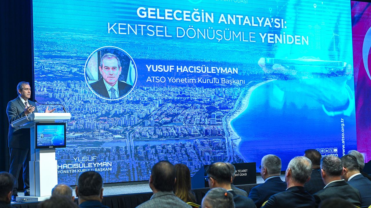 Antalya Ticaret ve Sanayi Odası (ATSO) tarafından düzenlenen “Geleceğin Antalya’sı: Kentsel Dönüşümle Yeniden” paneli, ATSO Yönetim Kurulu Başkanı Yusuf Hacısüleyman’ın ev sahipliğinde gerçekleştirildi. Antalya’nın geleceğini şekillendirecek kentsel dönüşüm politikalarının ele alındığı panele; Kumluca Belediye Başkanı Mesut Avcıoğlu, Çevre, Şehircilik ve İklim Değişikliği Bakanlığı Kentsel Dönüşüm Başkanlığı Riskli Yapılar Daire Başkanı Serdar Canikli, TSE Akdeniz Bölge Koordinatörü Hasan Demirtaş, Antalya Büyükşehir Belediyesi Başkan Başdanışmanı Dr. Cem Oğuz, Antalya Çevre ve Şehircilik İl Müdürü İsmail Öntaş, Antalya Ticaret İl Müdürü Halil Özşahan ile çok sayıda akademisyen, meslek odası temsilcisi ve sektör paydaşı katıldı.