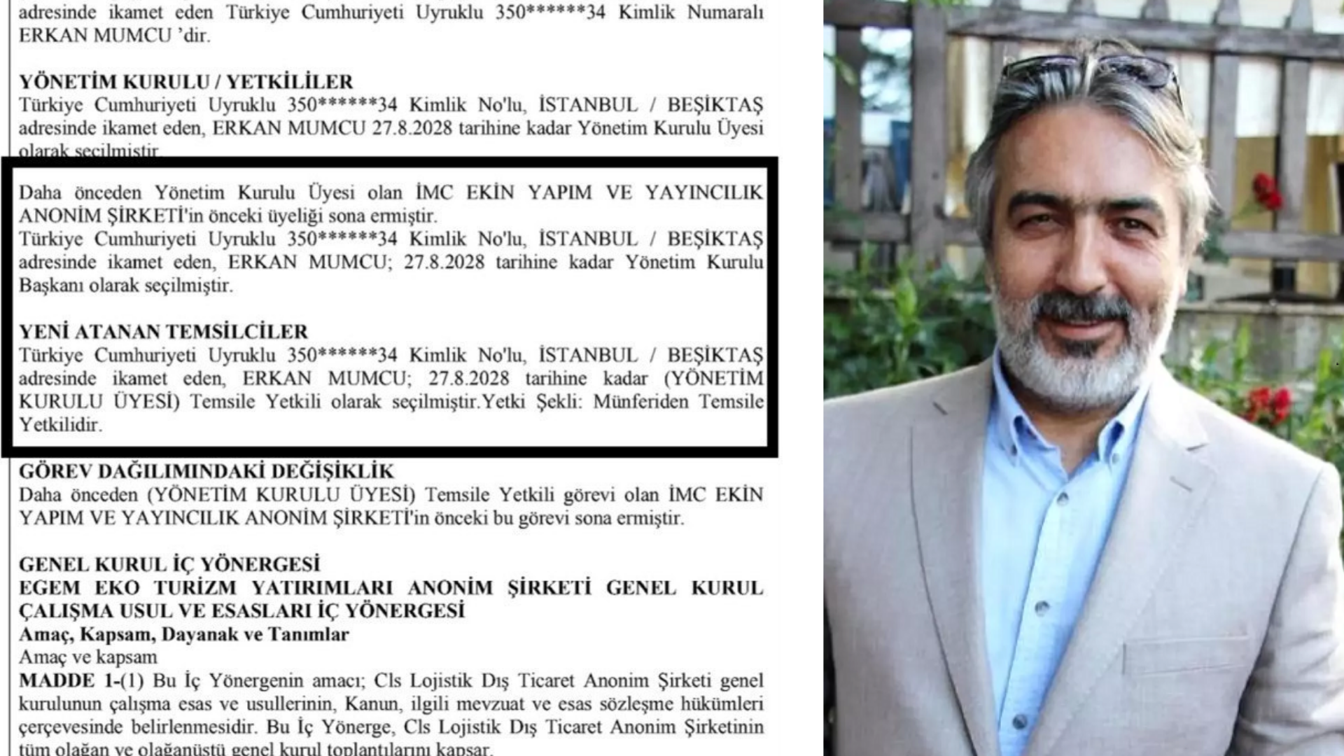 Mayıs 2022’de yine Mumcu’ya ait olan IMC Ekin Yapım ve Yayıncılık AŞ tarafından kurulan şirketin, 27 Ağustos 2025 tarihinde alınan yönetim kurulu kararına göre eski Bakan Erkan Mumcu’nun Ağustos 2028’e kadar şirket yetkilisi olarak atandığı görüldü.