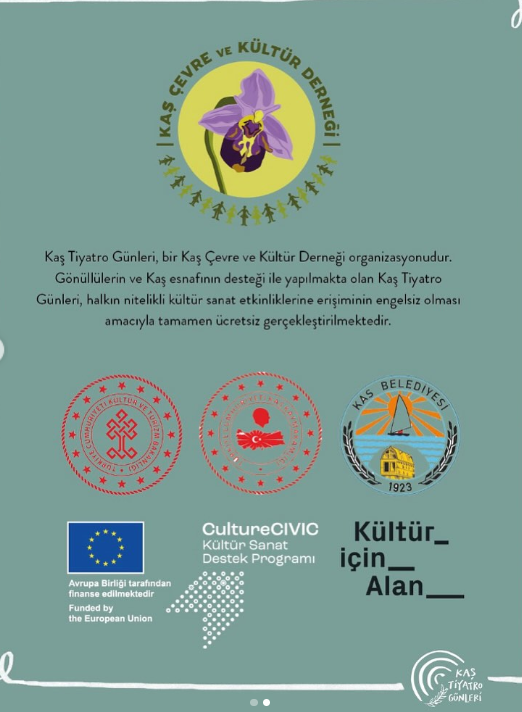 2022’de yalnızca üç oyunla başlayan festival, bugün gönüllülerin, Kaş halkının ve esnafının desteğiyle; 11 tiyatro oyunu ve performansın yanı sıra belgesel gösterimleri, paneller, atölyeler, şehir turları ve etkinliklerle dolu zengin bir programa ulaştı. Antiphellos Antik Tiyatrosu başta olmak üzere Kaş’ın farklı mekânlarında gerçekleşecek tüm etkinlikler ücretsiz olacak.