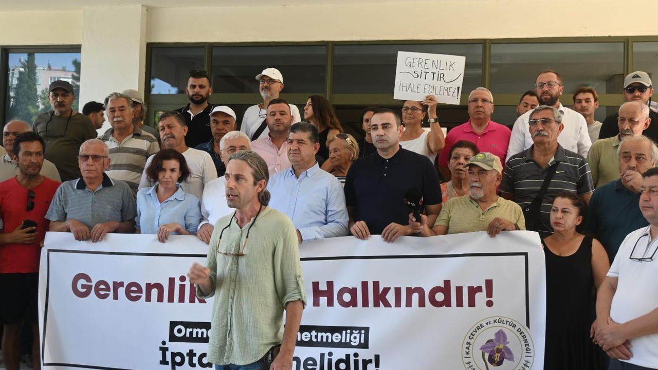 İhalenin yapılacağı Antalya Orman Bölge Müdürlüğü önünde sabah saatlerinde siyasi parti temsilcileri, çevre örgütleri, sivil toplum kuruluşları ve vatandaşlar toplandı. Protestoya; CHP İl Başkanı Nail Kamacı, TİP İl Başkanı Enes Keskin, Antalya milletvekilleri Aykut Kaya, Cavit Arı, Aliye Coşar ve Tuncay Ercenk ile Kaş ve Kalkan’dan gelen yurttaşlar katıldı.