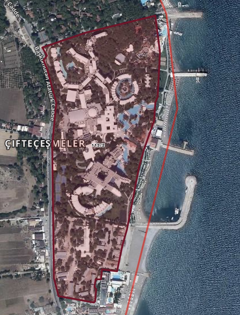 “Kemer Göynük'te 106/22 Parselde kayıtlı 70.755,30 m2'lik arazideki otelin toplam yasal inşaat alanının 28 bin m2 olduğu ancak villalar, çatı kat ve diğer eklentiler hariç 40 bin m2'yi bulan inşaat alanı oluştuğu öne sürülüyor. Arazi kamunun, teşvik kamudan, denetim..?”