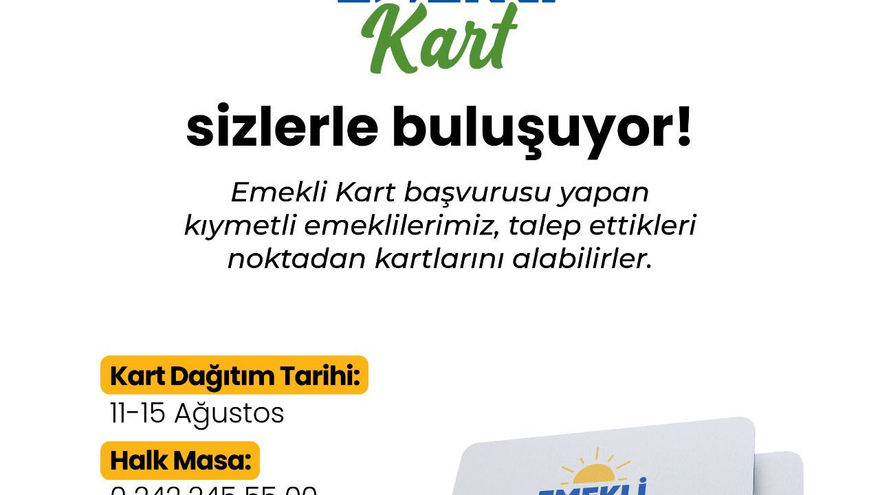 Konyaaltı Belediyesi, emekli vatandaşlara yönelik başlattığı destek projelerine ‘Emekli Kart’ uygulamasıyla devam ediyor. Bir süredir hazırlıkları süren ve yerel esnafla yapılan görüşmeler sonucunda şekillenen proje, ilçede yaşayan emeklilere hem ekonomik hem de sosyal katkılar sunmayı hedefliyor. Emeklilere özel hazırlanan ‘Emekli Kart’, 11-15 Ağustos tarihleri arasında HayatPark, Gürsu ve Siteler Emekli Kahveleri ve Konyaaltı Belediyesi Halkla İlişkiler birimlerinden teslim alınabilecek. Kartlarını teslim alan emekliler, 15 Ağustos’tan itibaren Konyaaltı sınırları içindeki belediye anlaşmalı çeşitli işletmelerde, hizmetlerden indirimli olarak faydalanabilecek