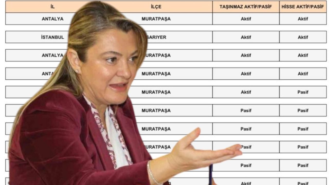 Haberde, Genel Sekreter Cansel Çevikol Tuncer’in Antalya’nın Muratpaşa, Konyaaltı ve Döşemealtı ilçeleri ile İstanbul’un Sarıyer ilçesinde toplam 14 taşınmazının bulunduğu, ayrıca Londra’da 2, İspanya’da 1 konut sahibi olduğu öne sürüldü. Çevikol Tuncer’in son dönemde 10 taşınmazını sattığı da iddialar arasında yer aldı.