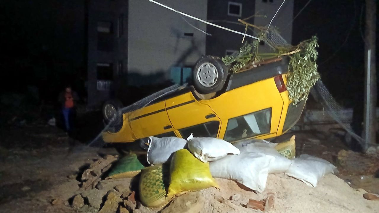 Hortum sırasında park halindeki bir otomobil yaklaşık 4 metre savrularak ters döndü. Savrulan otomobilin yanından geçen Sude Kiraz’a (20) çarpması sonucu genç kadın yaralandı. Olayda motosiklet ve bir kamyonetin de zarar gördüğü öğrenildi. İhbar üzerine bölgeye sağlık, jandarma, AFAD ve itfaiye ekipleri sevk edildi. Yaralı Sude Kiraz, ilk müdahalenin ardından ambulansla hastaneye kaldırılarak tedavi altına alındı.