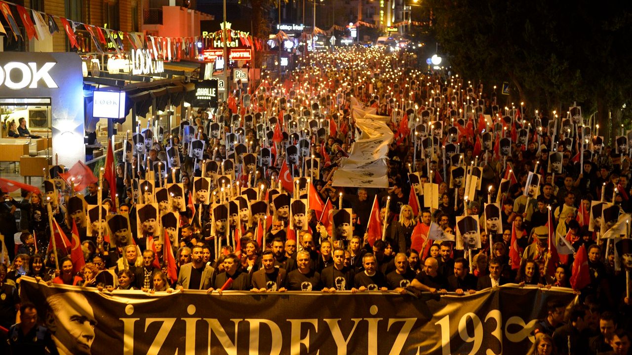 Meşaleler, Türk bayrakları ve Atatürk posterleriyle başlayan yürüyüş, Prof. Dr. Erdal İnönü Kent Parkı’na kadar sürdü.