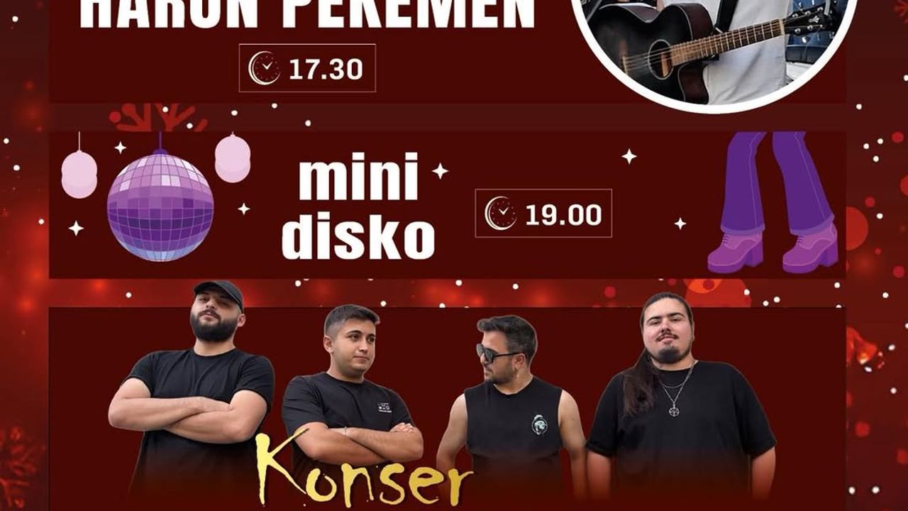 Etkinlikler, saat 17.30’da sahne alacak olan sanatçı Harun Pekemen konseriyle başlayacak. Program, saat 19.00’da düzenlenecek mini disko etkinliğiyle devam edecek. Gecenin finalinde ise saat 20.00’de Mars The Band sahne alarak yeni yıl coşkusunu müzikle taçlandıracak.