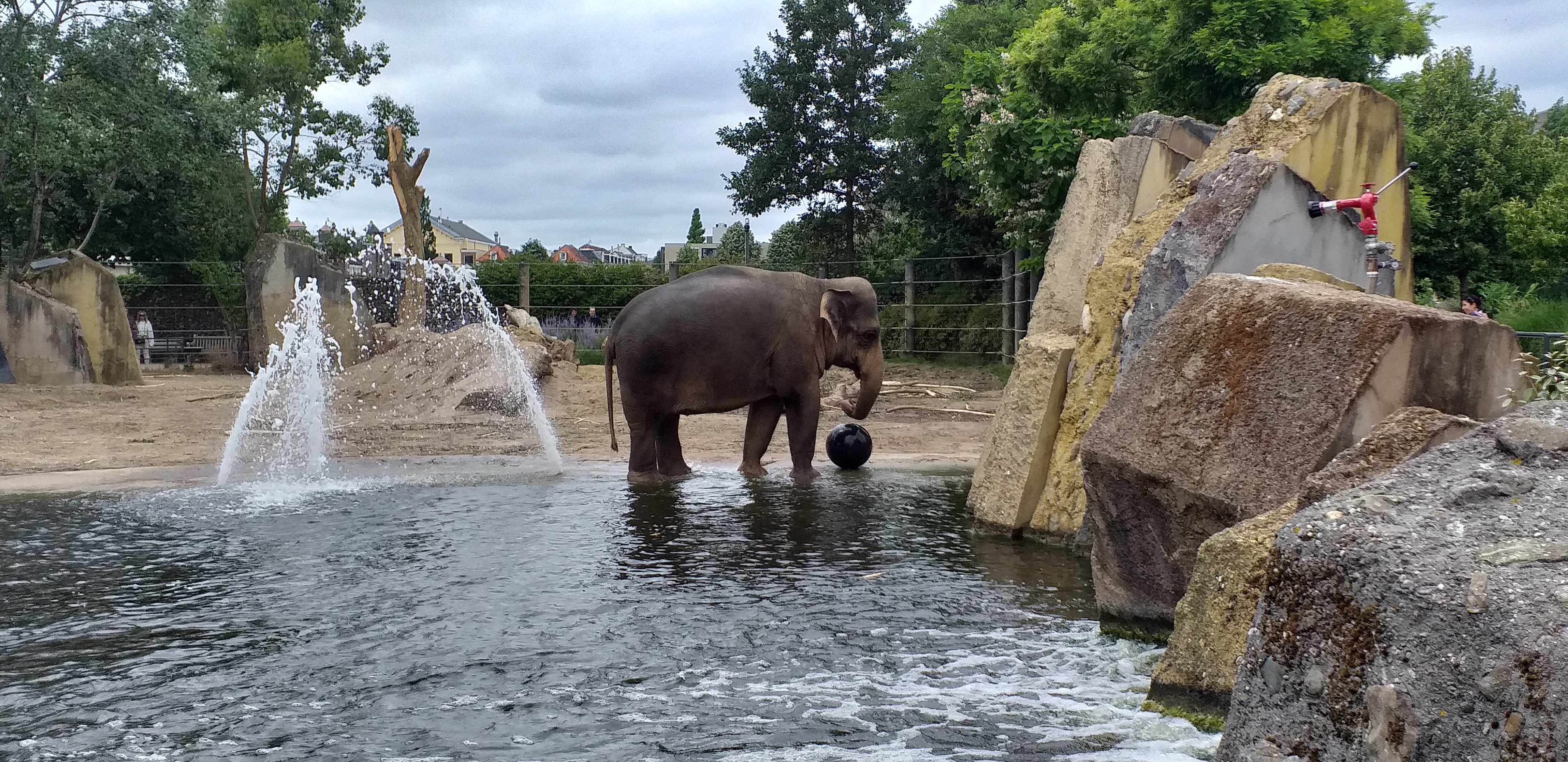 Hortumlarıyla kendi sırtlarına kum püskürten, suda topla oynayan filler; iplerde gezinip oradan oraya zıplayan maymunlar; devasa boylarıyla yüksek dallardan yaprak yiyen zürafalar çocukların çok ilgisini çekiyor. Heyecan içinde Felemenkçe ya da İngilizce olarak onların isimlerini bağırarak hareketlerini izliyorlar.