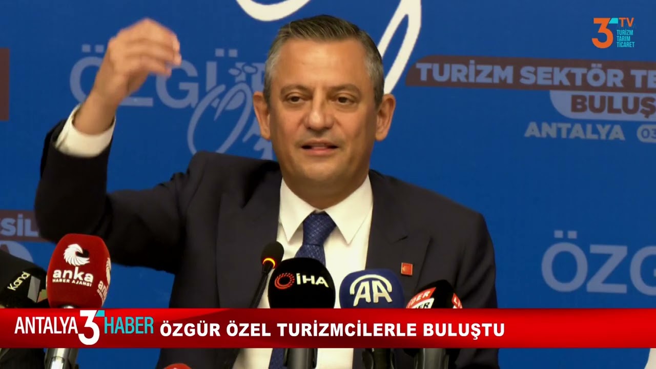 CHP Genel Başkanı Özgür Özel, Antalya ziyareti programı kapsamında turizm alanındaki sivil toplum kuruluşları ve önde gelen kanaat önderleri ile buluştu. Basına kapalı gerçekleşen toplantı sonrasında konuşan Özel, “Bir ülke dışarıdan endişelerin çok olduğu bir ülke olarak görülüyorsa o ülkeye turist gelmez” dedi. Özel, “Bir İsrailli ve Filistinli’nin kardeşçe yaşayabileceği ve her ikisinin de dostluk görebileceği ülke Türkiye’dir. Biz savaş politikaları yürüten faşist Netanyahu hükümetine karşıyız. İsrail halkına karşı değiliz. İsrailli turistleri Antalya’ya bekliyoruz” dedi. Özel’in turizm alanına yönelik yaptığı açıklamalardan öne çıkan satırbaşları şöyle:
