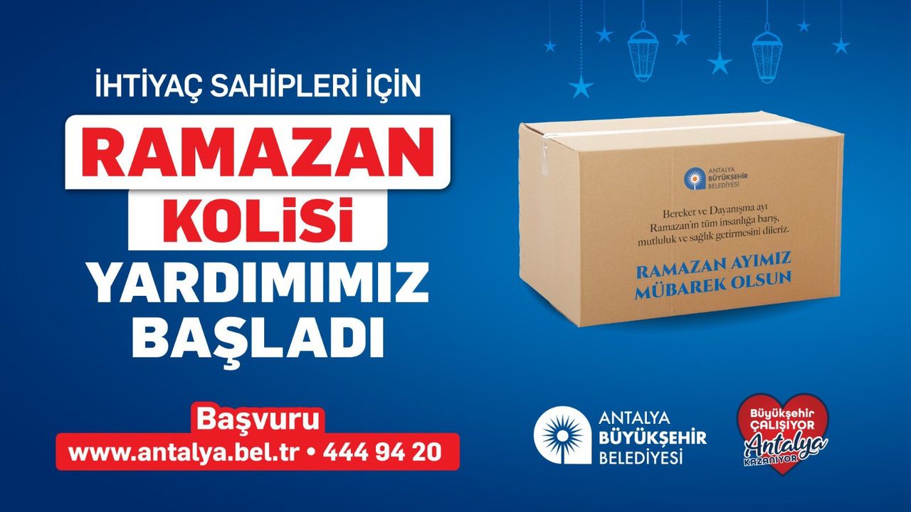 Ramazan kolisi yardımından faydalanmak isteyen vatandaşlar, başvurularını 'www.antalya.bel.tr' adresi üzerinden yapabilecek. İnternet erişimi bulunmayan vatandaşlar ise '444 94 20' numaralı telefon hattı aracılığıyla taleplerini iletebiliyor.