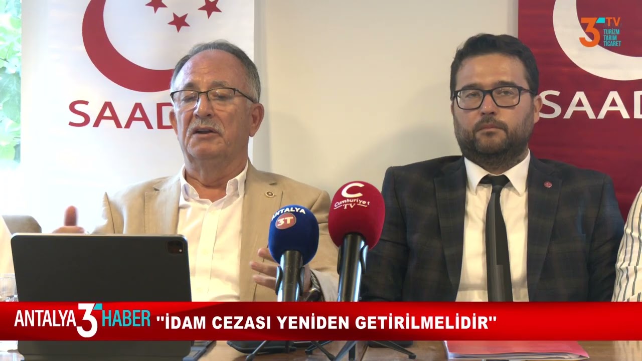 Saadet Partisi Antalya İl Başkanlığı, bir basın toplantısı düzenleyerek Türkiye ve Antalya’nın gündemini değerlendirdi. Saadet Partisi Antalya Milletvekili Şerafettin Kılıç, Diyarbakır’da 8 yaşındaki Narin Güran’ın öldürülmesiyle ilgili ‘idam cezası yeniden getirilmeli’ yorumunu yaptı. HÜDA-PAR Genel Başkanı Zekeriya Yapıcıoğlu’nun Anayasa’nın 4. Maddesiyle ilgili sözlerine “Gündemi kendileriyle meşgul etmeye çalışıyorlar” sözleriyle tepki gösterdi.