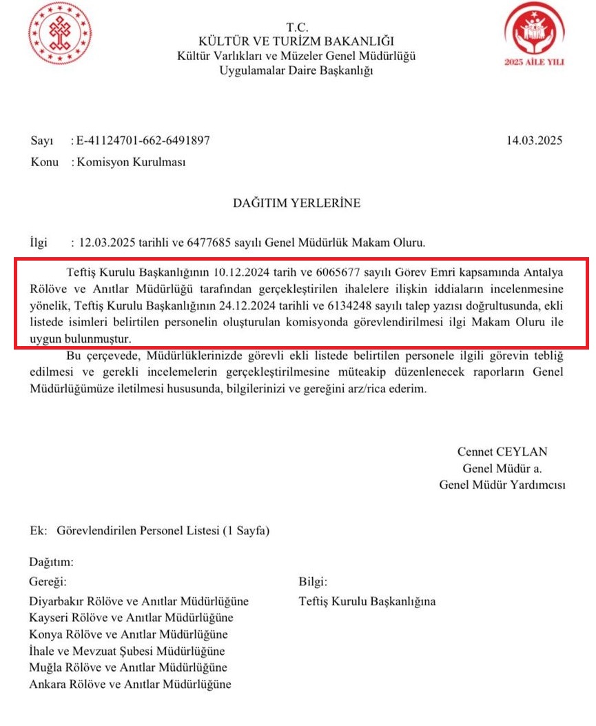 Öte yandan Sayıştay’ın geçtiğimiz yıl yaptığı denetimlerde tespit edilen bulgular ve adli makamlara yansıyan suç duyurularının ardından Kültür ve Turizm Bakanlığı Antalya Rölöve ve Anıtlar Müdürlüğü’nde inceleme başlatmıştı. İhalelerde yönetmeliğe aykırı olarak yüklenicilerden araç talep edilmesi de inceleme konusu olmuştu. Farklı illerden gelen Bakanlık uzmanlarının son iki yılda yapılan ihaleleri mercek altına aldığı inceleme kapsamında ne tür bulgulara ulaşıldığı, sorumlular hakkında bir yaptırım uygulanıp uygulanmadığı konusunda resmi bir açıklama yapılmış değil. Ancak son yıllarda Side’den Phaselis’e, Olimpos’tan Syedra’ya yüzlerce milyon liralık ihale yapan Antalya Rölöve ve Anıtlar Müdürlüğü’nde görev yapan bazı teknik personelin birim değiştirdiği öne sürülüyor.*