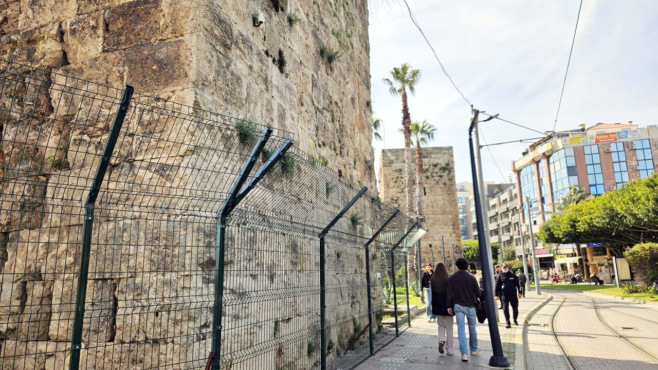 Bilim insanlarının ve koruma uzmanlarının uyarıları sonrasında, mülkiyeti Muratpaşa Belediyesi’ne ait Kale Kapısı’ndaki burç yapısının çevresi tel örgüyle kapatıldı. Alınan bu önlemin, olası parça düşmelerine karşı geçici güvenlik tedbiri amacı taşıdığı belirtildi.
