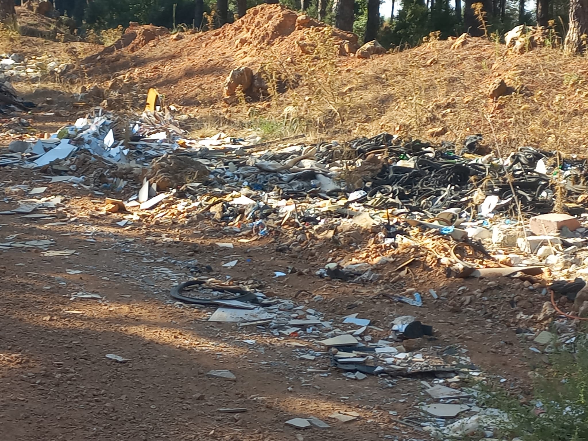Fotoğraflarda görülen alan, çam ormanlarıyla kaplı bölgenin ortasında yer alıyor. Yol kenarlarına gelişigüzel dökülmüş hafriyat, inşaat molozları, plastik, lastik ve çeşitli sanayi atıkları bölge ekosistemini tehdit ediyor.