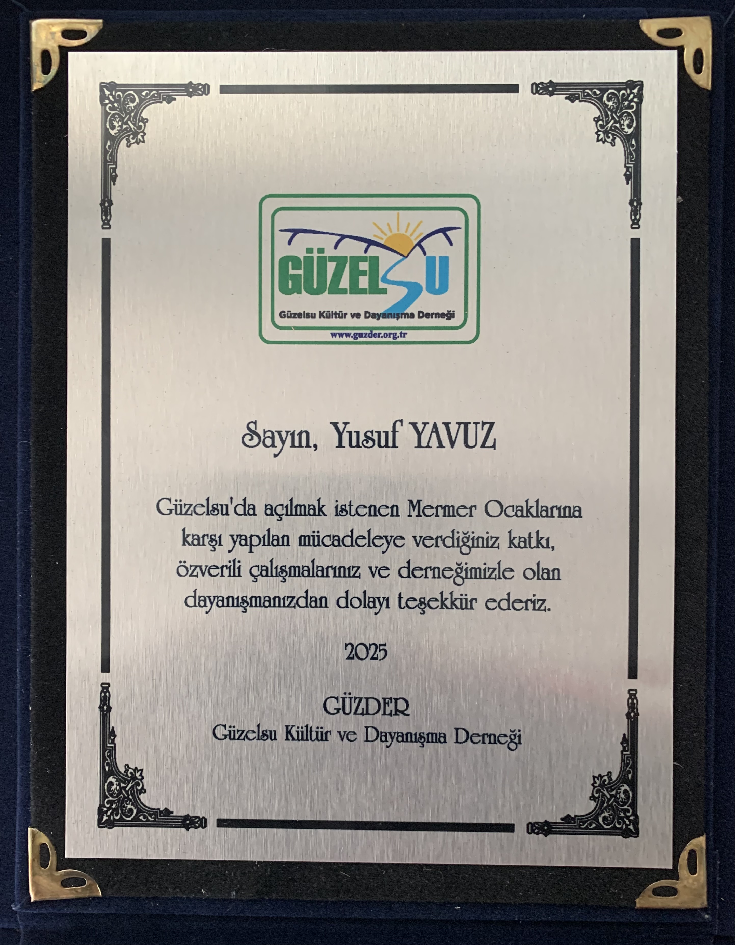 El birliği ile madenci yıkımı tehdidini bölgeden uzaklaştıran Güzelsu Derneği’nin dün genel kurul toplantısı vardı. Birkaç gün önce Cengiz Demirtaş Bey telefonla arayarak derneğin bu etkinliğine davet etti. Bunun üzerine dün yolumuz Güzelsu köyüne düştü. Dernek yönetimi incelik ve kadirşinaslık gösterip bu mücadele sürecinde emeği geçen, katkı sunan, benim de aralarında olduğum isimleri birer plaket ile ödüllendirmeyi uygun görmüş. Bu da bir çeşit dayanışma ruhu, bu güzel topraklar için umudu besleyecek bir adım.