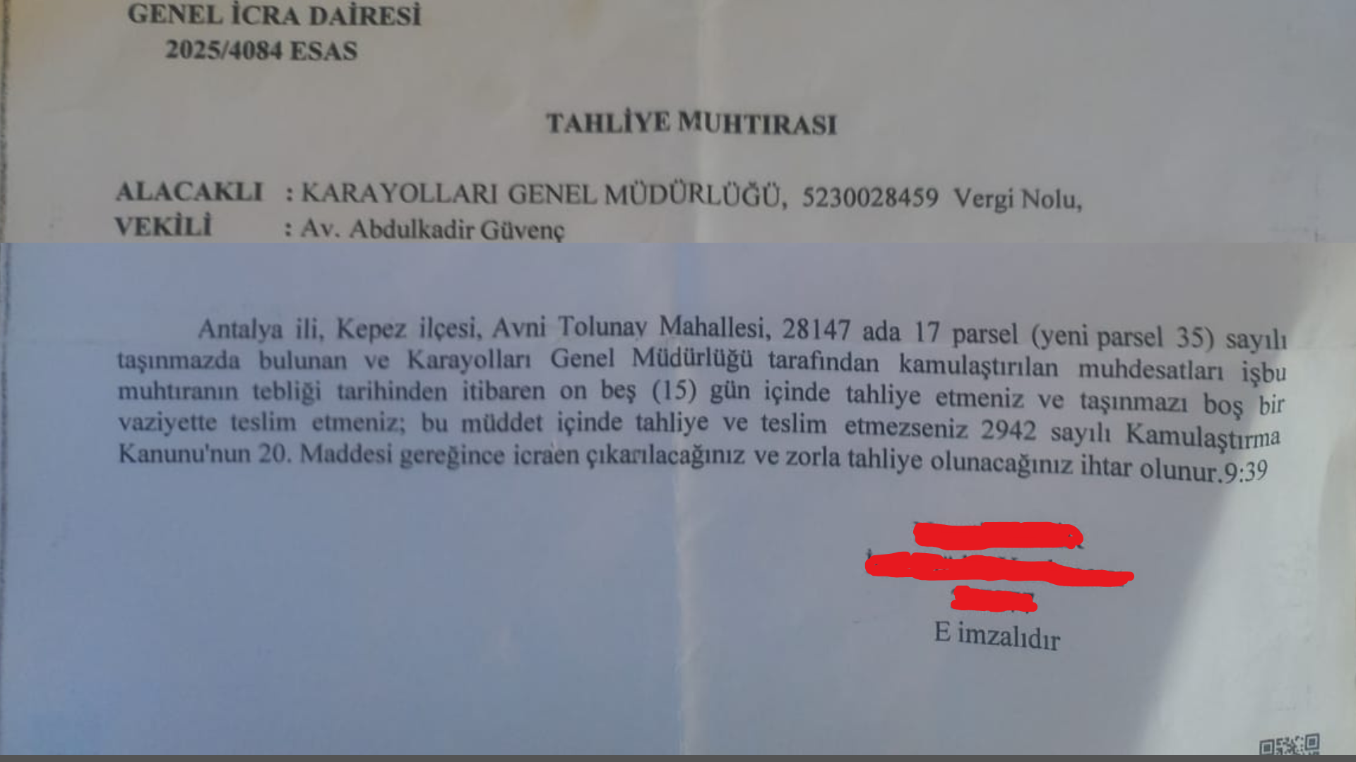 Yavuz ailesinin enflasyon nedeniyle yaşadığı maddi kayıp burada bitmedi. 2025 yılının Ocak ayında Yavuz ailesinin evine 8 bin 500 liralık masrafı kendilerinden talep edilen bir tebligat daha ulaştı. Tebligatta Yavuz ailesinin evi için yıkım kararı alındığı ve 15 gün içinde evi boşaltmaları bildiriliyordu.