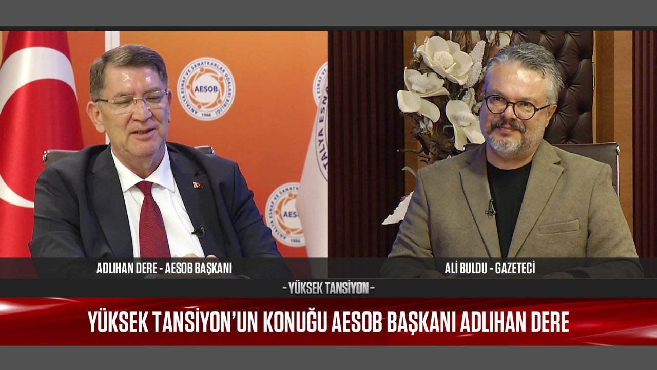 Antalya Video AESOB Başkanı Adlıhan Dere Yüksek Tansiyon'da Yüksek Tansiyon, yine Antalya gündeminin nabzını tutuyor. Usta gazeteci Ali Buldu soruyor, AESOB Başkanı Adlıhan Dere; tüm merak edilenleri anlatıyor. 29.04.2026 - 00:26 29.04.2026 - 00:26
