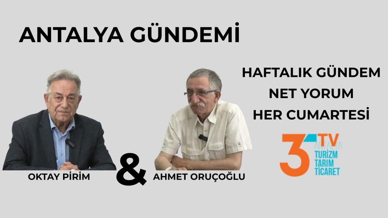 Antalya Video Antalya Gündemi yayında Her hafta Antalya'nın gündeminde öne çıkan haberleri ve başklıkları Oktay Pirim ve Ahmet Oruçoğlu sizler için derliyor, özetliyor ve değerlendiriyor. 07.06.2025 - 07:00 07.06.2025 - 07:00 Loading...