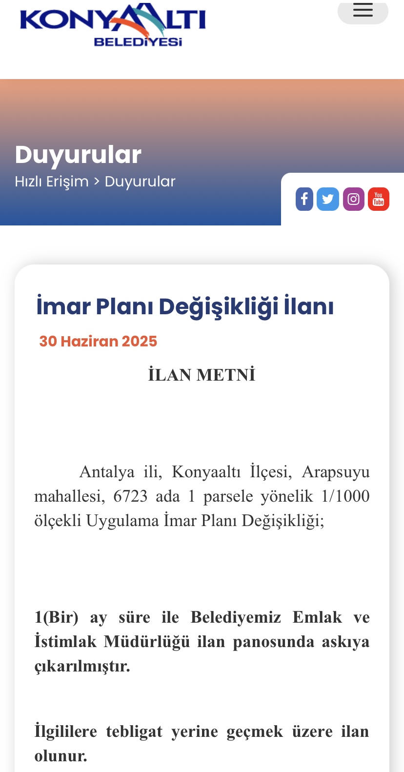 Konyaaltı Arapsuyu Mahallesi 6723/1 parselde bulunan 4 katlı bina yıkılarak yerine yeni bir bina yapılmak istendi. Bu süreçte devreye giren Pınarlar Kurumsal Hizmetler AŞ, 4 Ocak 2024 tarihinde 1133 m²’lik parseli satın aldı. Ardından yıkılan binanın olduğu bu parselde bir otel projesi hazırlandı. Proje için Pınarlar Kurumsal Hizmet. Turz. San. ve Tic. A.Ş. tarafından sunulan dosyaya, 5 Nisan 2024 tarihinde ‘ÇED Gerekli Değildir’ kararı verildi.
