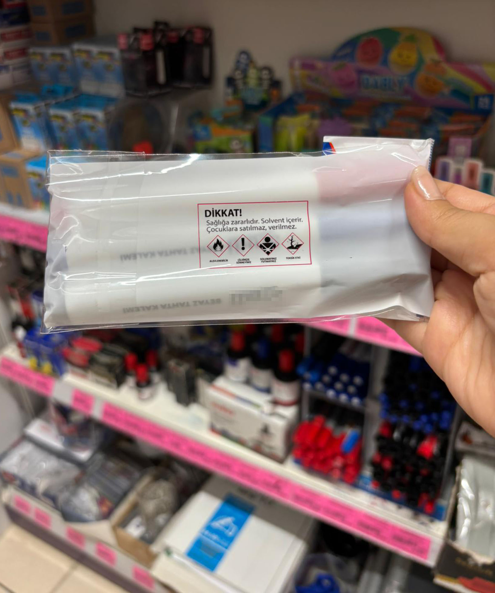 Bayrak, zincir marketlerde satılan bazı ürünlerin üzerinde “Sağlığa zararlıdır, solvent içerir. Çocuklara satılamaz, verilemez” ibaresi bulunduğunu hatırlatarak, “Bu ürünler zehir etkisi yaratabilecek maddeler içeriyor. Kalitesiz olduğu için ucuz satılıyor ama hem sağlıksız hem de hesaplı değil. Bizim sattığımız kalem 300-400 metre yazarken, zincir markette satılan kalem en fazla 100 metre yazabiliyor” dedi.